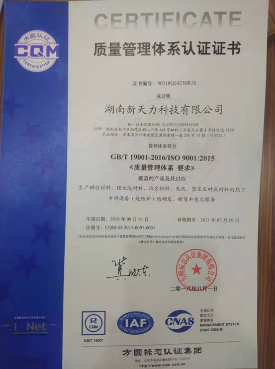 6月13日,湖南新天力科技有限公司順利通過ISO9001質(zhì)量管理體系認(rèn)證年審。