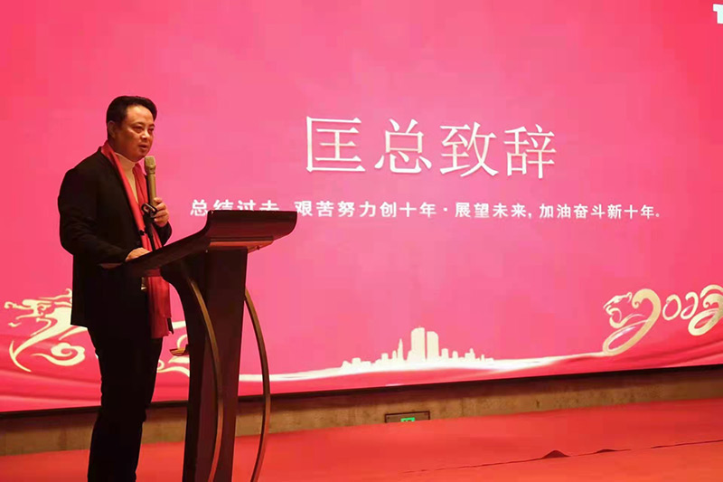 匡萬兵總經(jīng)理在2021年度工作總結(jié)中,分別點(diǎn)評了各部門工作,為新一年的工作指出了方向,并在十周年致辭中深情回顧了新天力創(chuàng)立以來十年歷程,代表公司感謝所有為新天力成長付出努力、給予關(guān)心的合作伙伴、員工和員工家屬,并表示新天力人將不忘初心,全力以赴奮斗下一個(gè)新十年。