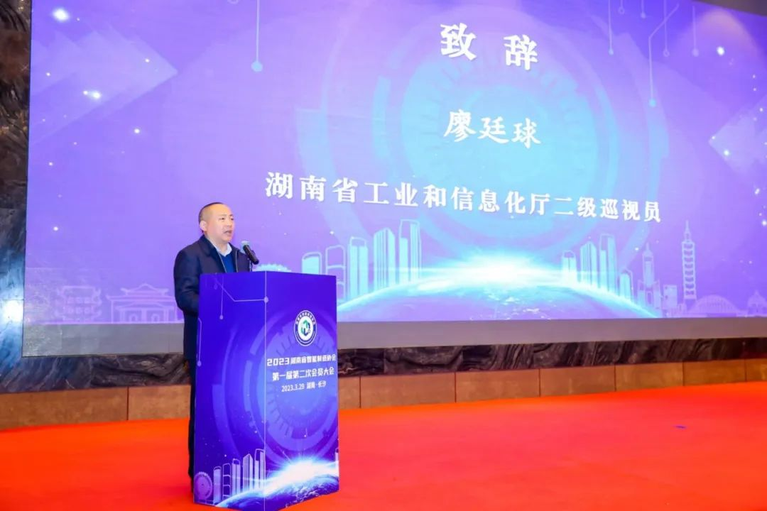 湖南省工業(yè)和信息化廳二級巡視員廖廷球、省民政廳社會組織管理局三級調(diào)研員伍照華、長沙經(jīng)開區(qū)二級調(diào)研員杜海霞在大會上作了致辭。